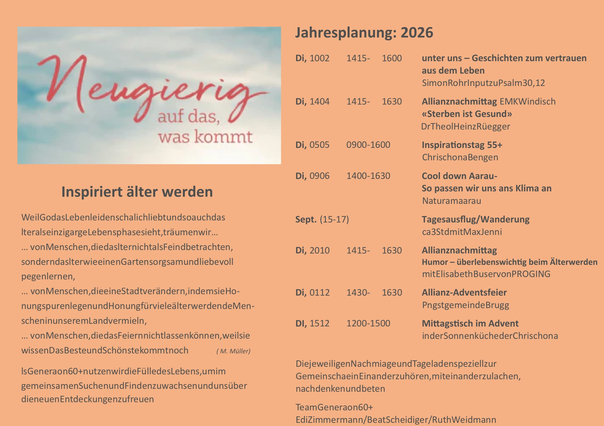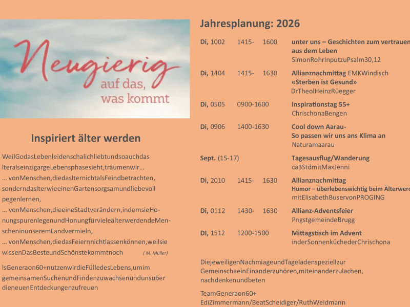 Dieses Jahresprogramm gibt einen Gesamtüberblick über die Veranstaltungen, die für die Generation 60+ ist.