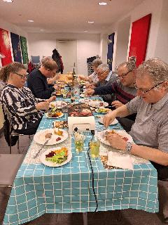 Einige Geschwister sind unserem Aufruf gefolgt und wir haben zusammen in der Sonnenküche einen schönen und lustigen Abend verbracht. Nach einem Begrüssungsapéro gab es ein Bibelquiz für alle. Wir haben gestaunt über das enorme Wissen aus dem Alten Testament, das gewisse Leute an den Tag legten. Anschliessend genossen wir Fleisch vom Tischgrill mit feinen Salaten und Wedges. Anschliessend spielten wir ein paar Runden Lotto mit speziellen Preisen. Es gab verschiedene Gemüse zu gewinnen, was zur allgemeinen Erheiterung beitrug. Auch etwas Schoggi und Guetsli durften natürlich nicht fehlen. Zwischendurch gab es noch eine Dessertrunde, die unsere Bäuche definitiv gut gefüllt zurückliess. So verging die Zeit wie im Flug und bald war es Mitternacht und Zeit, aufs neue Jahr anzustossen. Wir haben diesen Abend alle sehr genossen und durften uns während dieser lockeren Zeit auf eine andere Art besser kennenlernen.